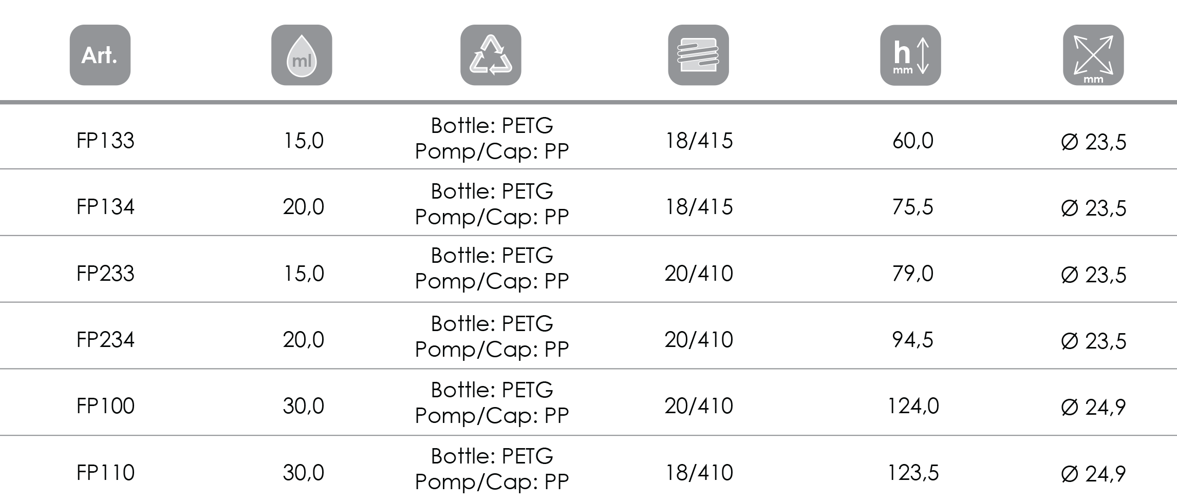 Thanks to the NEW ORLEANS range, C.P. ITALIA offers PETG solutions for every need, with the option to use cream or spray dispensers and even spatulas for fluids. Last but not least is the possibility of using this range in the hotel or mini-size travel sectors.